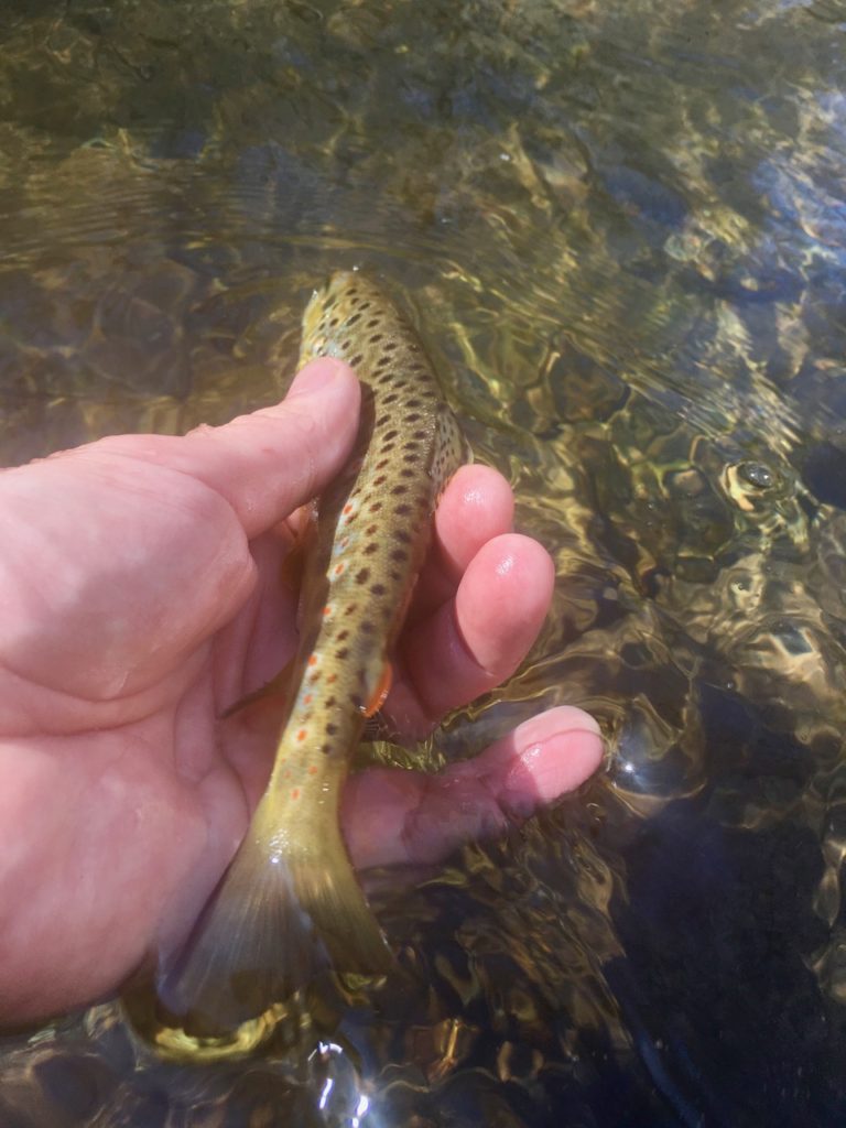 The National Park Service requires that brown trout caught in Shenandoah National Park cannot be returned to the Hughes, Rose, or Brokenback. Browns are invasive and have a negative impact on native brook trout in those streams. I’m not sure why the Conway is not included in those regulations, but Virginia seems to encourage people to seek out brown trout there.